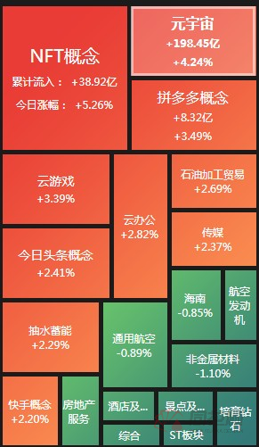 10:20 元宇宙概念持续走强,会畅通讯、奥雅设计等多股涨停,宝鹰股份、汤姆猫、中青宝跟涨。