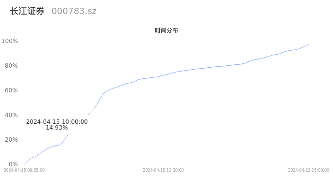 000783长江证券2024年04月15日成交105.07万手,成交金额5.63亿元,相较昨日放量47.34万手,换手率1.90%,成交清淡。