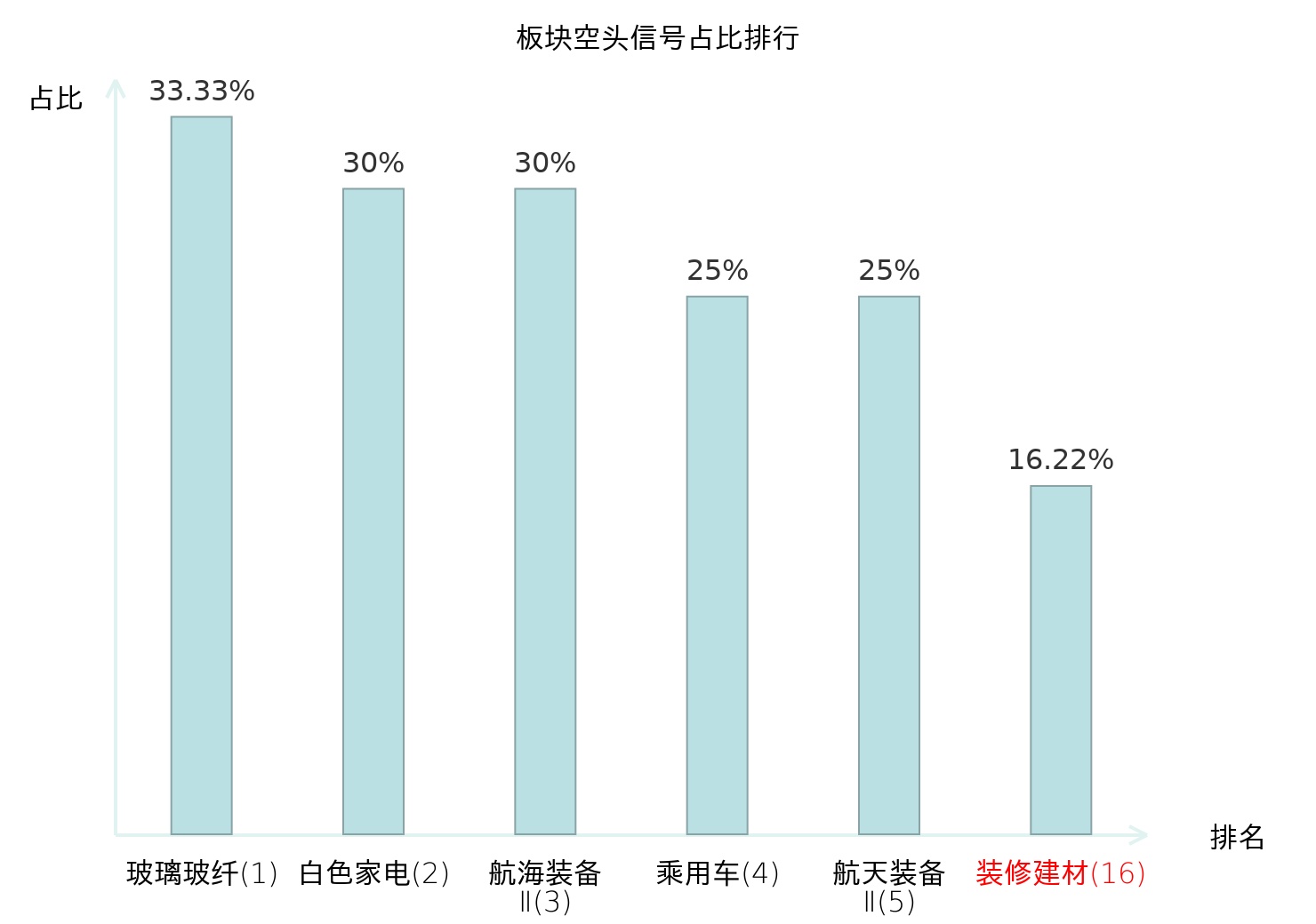 全市场所有行业板块中主力空头信号占比排名中,玻璃玻纤板块位居第一。工程机械板块名次提升最快,较昨日上升108位。