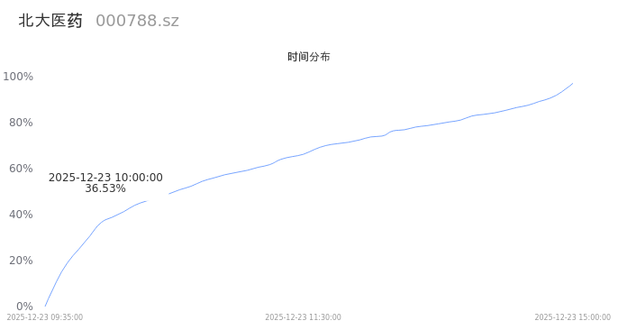 000788北大医药2025年12月23日成交25.07万手,成交金额1.59亿,相较昨日缩量2.43万手,换手率4.21%,成交清淡。