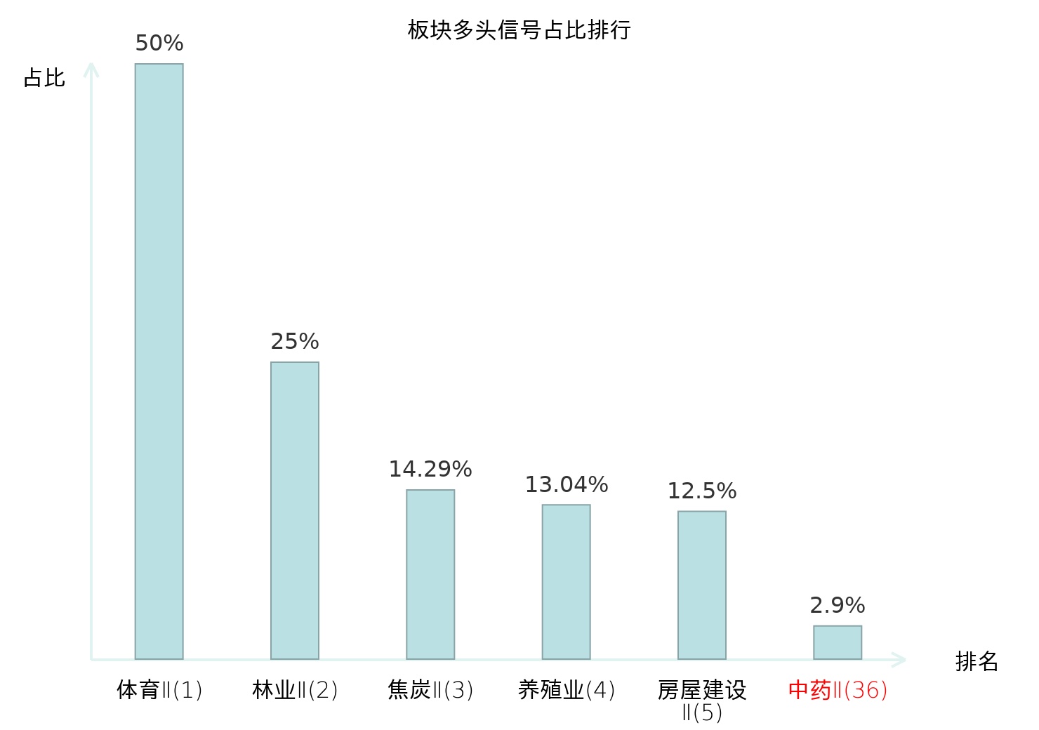 全市场所有行业板块中主力多头信号占比排名中,体育Ⅱ板块位居第一。体育Ⅱ板块名次提升最快,较昨日上升130位。