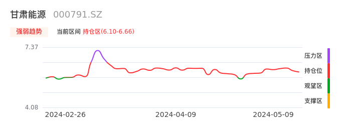 我们来看一下该股的九方特色指标强弱趋势的情况:甘肃能源自04月24日从观望区上穿到持仓区。股价近期在多头区域回调整理。后续重点关注多空分界点的争夺:6.10元。如未能有效站稳则可能重新回到空头行情。