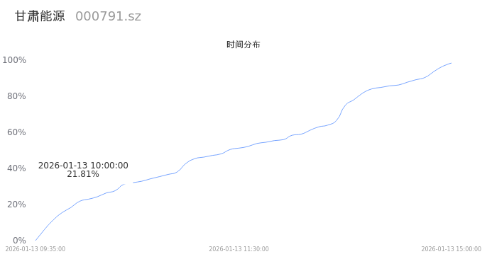 000791甘肃能源2026年01月13日成交33.91万手,成交金额2.25亿,相较昨日放量11.58万手,换手率1.75%,成交清淡。