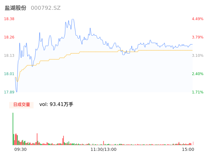 05月07日,盐湖股份收报18.21,股价涨幅3.52%,成交金额16.97亿元,换手率1.72%。