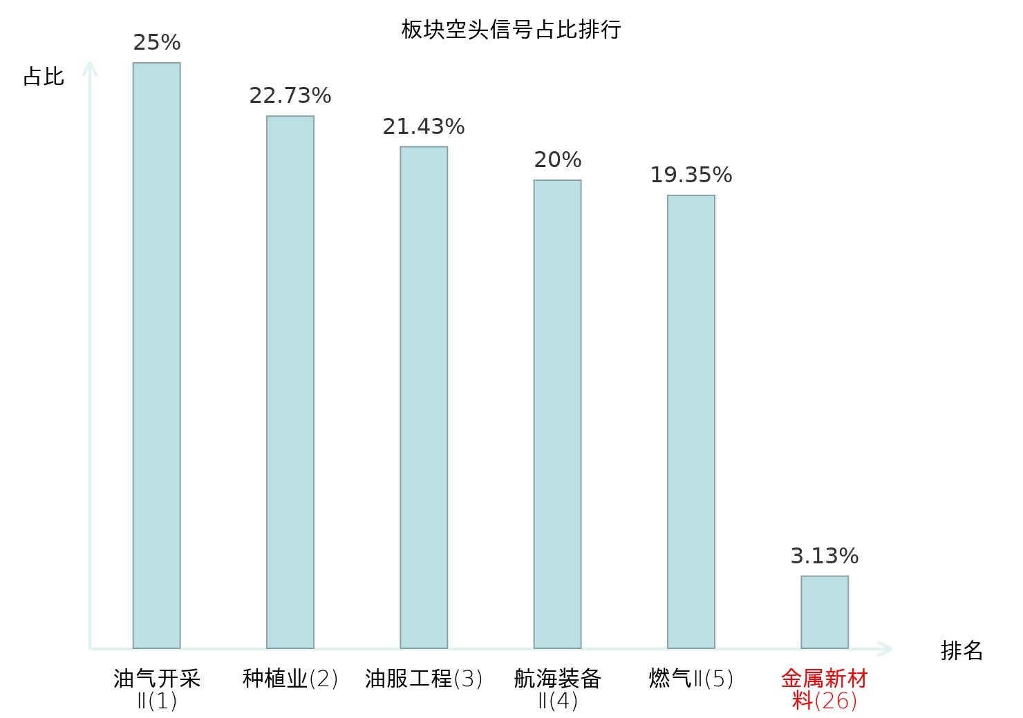 全市场所有行业板块中主力空头信号占比排名中,油气开采Ⅱ板块位居第一。专业工程板块名次提升最快,较昨日上升101位。