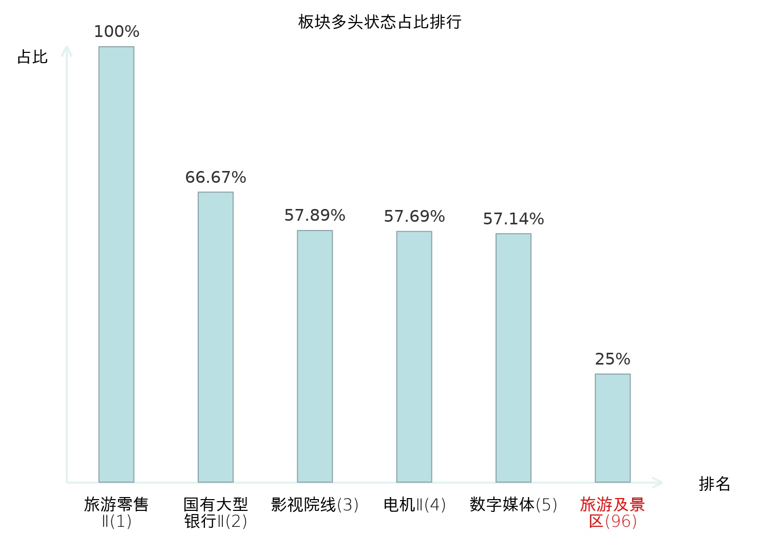 从主力宝信号数据分析,凯撒旅业所属的旅游及景区板块中共有6只股票处于主力多头状态,主力多头状态占比在全行业中排名第96位,较昨日上升7位。排名上升表明主力对该板块整体看多意愿有所增强。全市场所有行业板块中,旅游零售Ⅱ板块的主力多头状态占比位居第一。专业连锁Ⅱ板块名次提升最快,较昨日上升56位。这些变动反映了主力资金在不同行业间的偏好调整,为投资者提供了观察市场趋势和主力态度的重要参考。