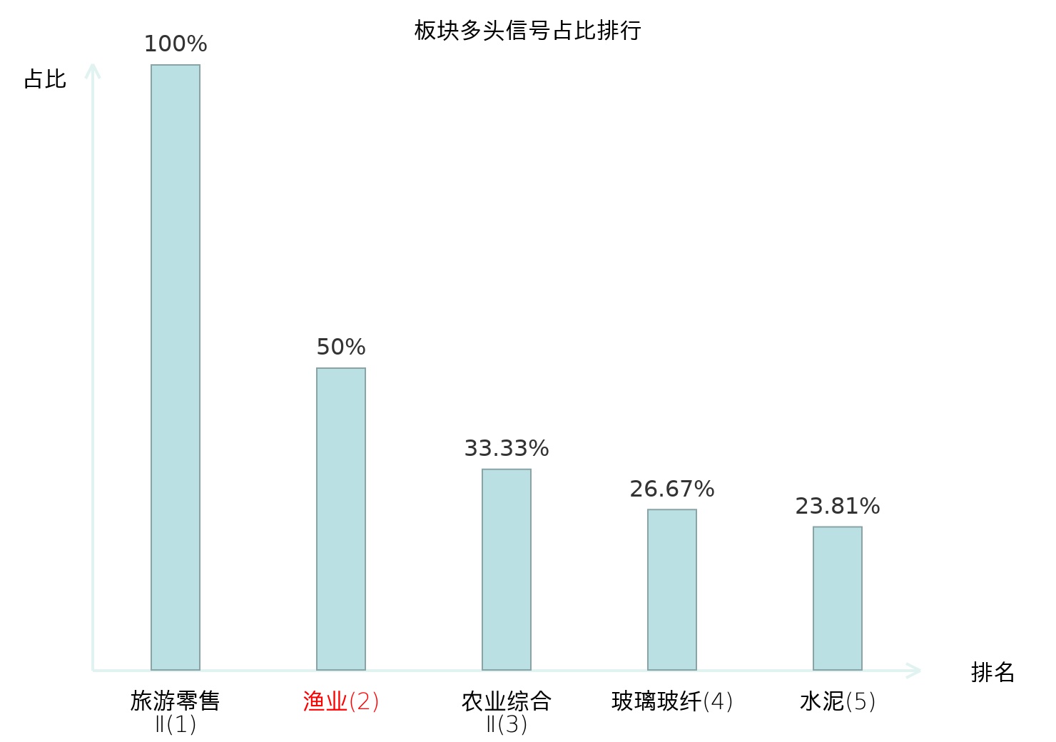 从主力宝信号数据分析,中水渔业所属的渔业板块中共有3只股票发出主力多头信号,主力多头信号占比在全行业中排名第2位,较昨日上升121位。排名的显著提升表明主力对渔业板块的买入意愿增强。全市场所有行业板块中主力多头信号占比排名中,旅游零售Ⅱ板块位居第一,名次提升最快,较昨日上升130位。这些变动揭示了不同行业间主力资金的偏好变化,为投资者提供了市场情绪和潜在机会的重要线索。