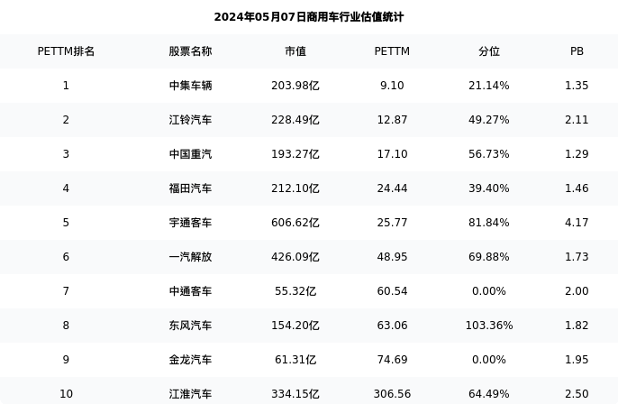 从估值角度看:一汽解放最新市盈率PETTM为48.95,在行业内排名6/14,处于69.88分位。