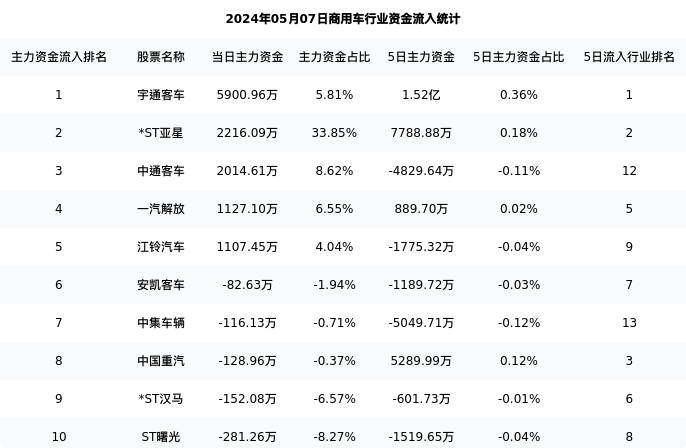 从主力资金流向来看,商用车行业今日主力资金流入15.29亿元,在所有申万二级行业中排名:46/131。