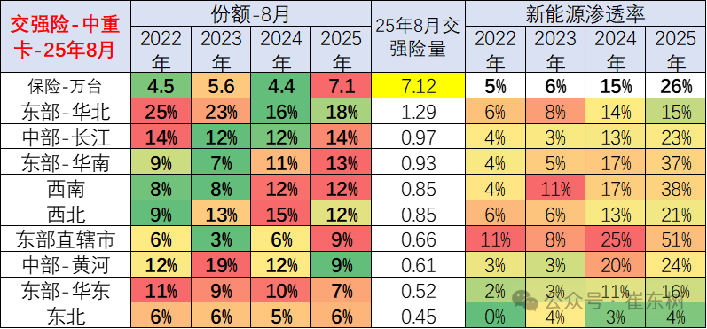 新能源轻卡主要的市场还是在东部—华南市场和华东市场表现相对较强,8月的华东、华南市场因关税贸易战走弱,而京津沪的直辖市市场总体来看今年相对恢复。