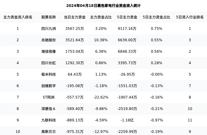从主力资金流向来看,黑色家电行业今日主力资金流入12.15亿元,在所有申万二级行业中排名:63/131。