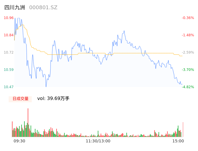 04月16日,四川九洲收报10.49,股价涨幅-4.64%,成交金额4.24亿元,换手率3.88%。