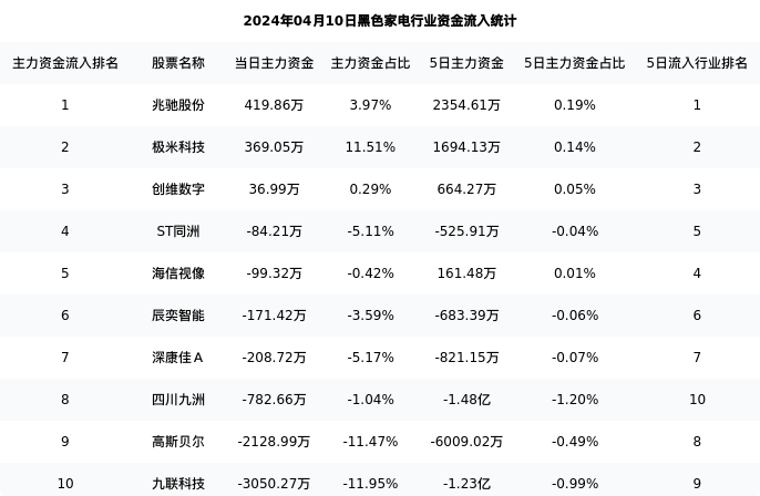 从主力资金流向来看,黑色家电行业今日主力资金流入6.23亿元,在所有申万二级行业中排名:105/131。