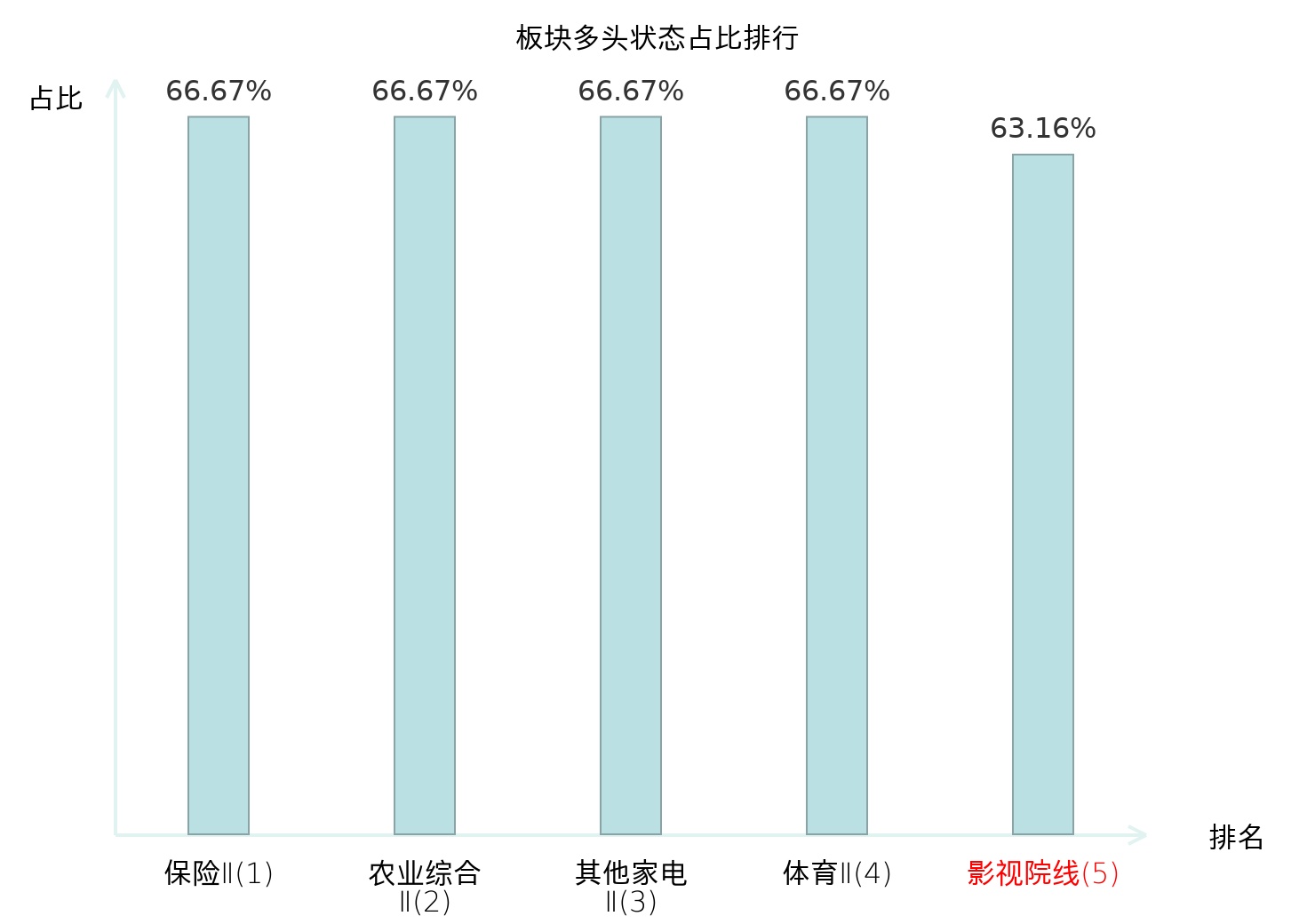 全市场所有行业板块中主力多头状态占比排名中,保险Ⅱ板块位居第一。冶钢原料板块名次提升最快,较昨日上升53位。