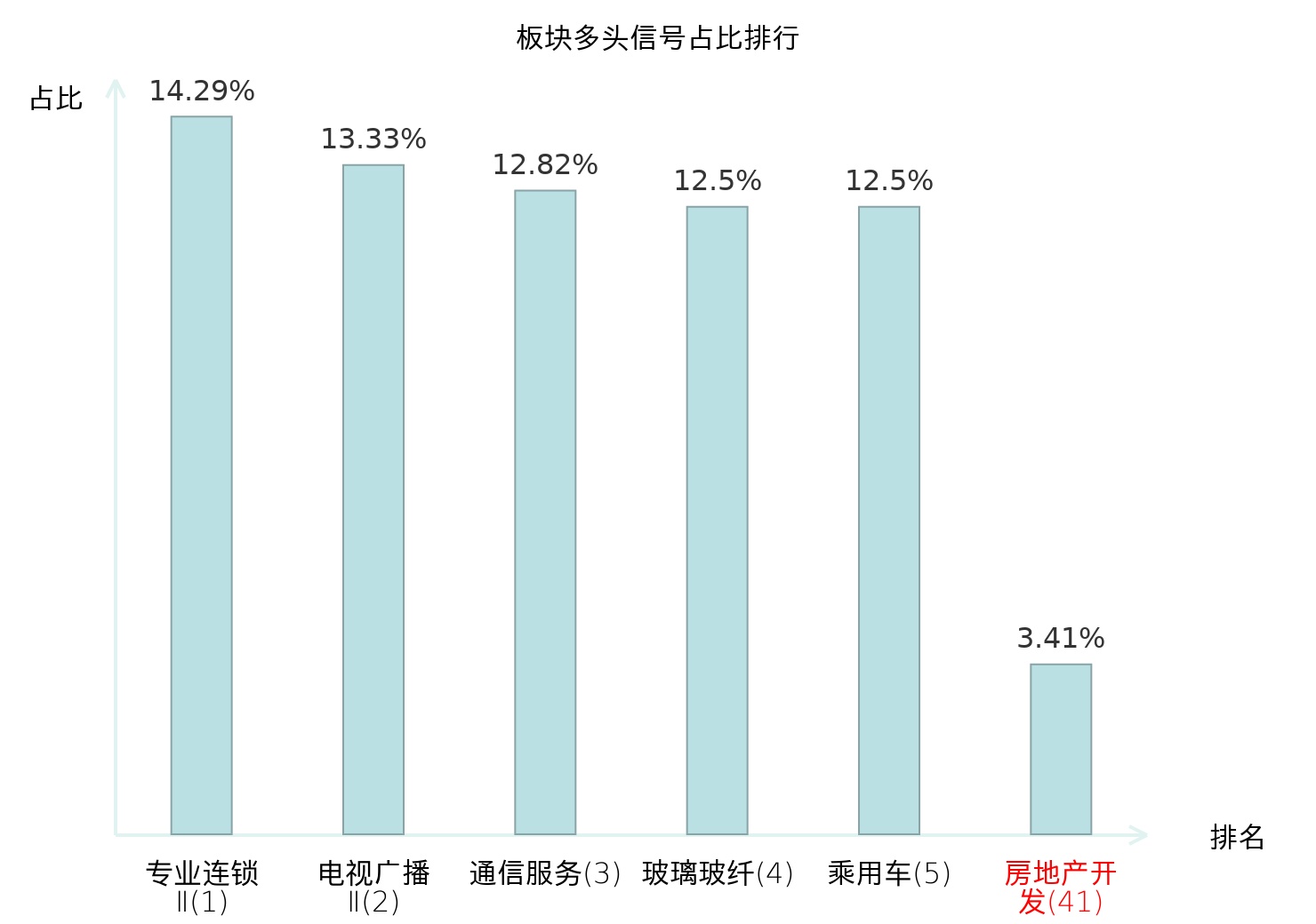 全市场所有行业板块中主力多头信号占比排名中,专业连锁Ⅱ板块位居第一。专业连锁Ⅱ板块名次提升最快,较昨日上升124位。