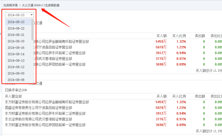 软件上方点击龙虎榜