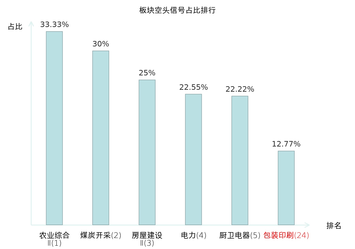 全市场所有行业板块中主力空头信号占比排名中,农业综合Ⅱ板块位居第一。旅游及景区板块名次提升最快,较昨日上升112位。