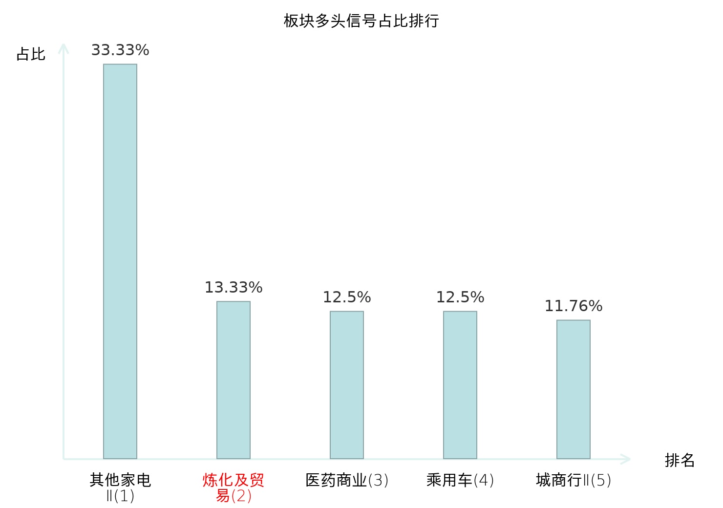 全市场所有行业板块中主力多头信号占比排名中,其他家电Ⅱ板块位居第一。其他家电Ⅱ板块名次提升最快,较昨日上升128位。