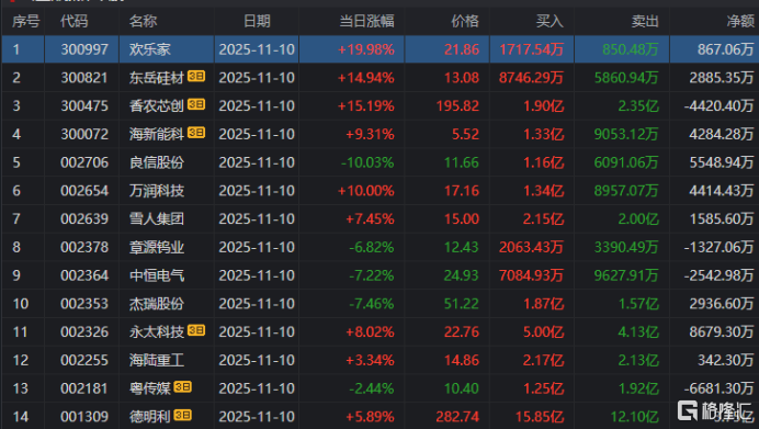 湖里大道:净买入华盛锂电5421万元;净卖出良信股份6307万元