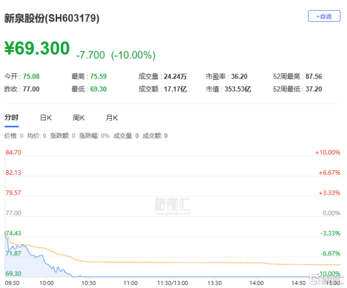 新泉股份特斯拉概念下跌+前期涨幅较大+三季报净利下滑