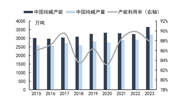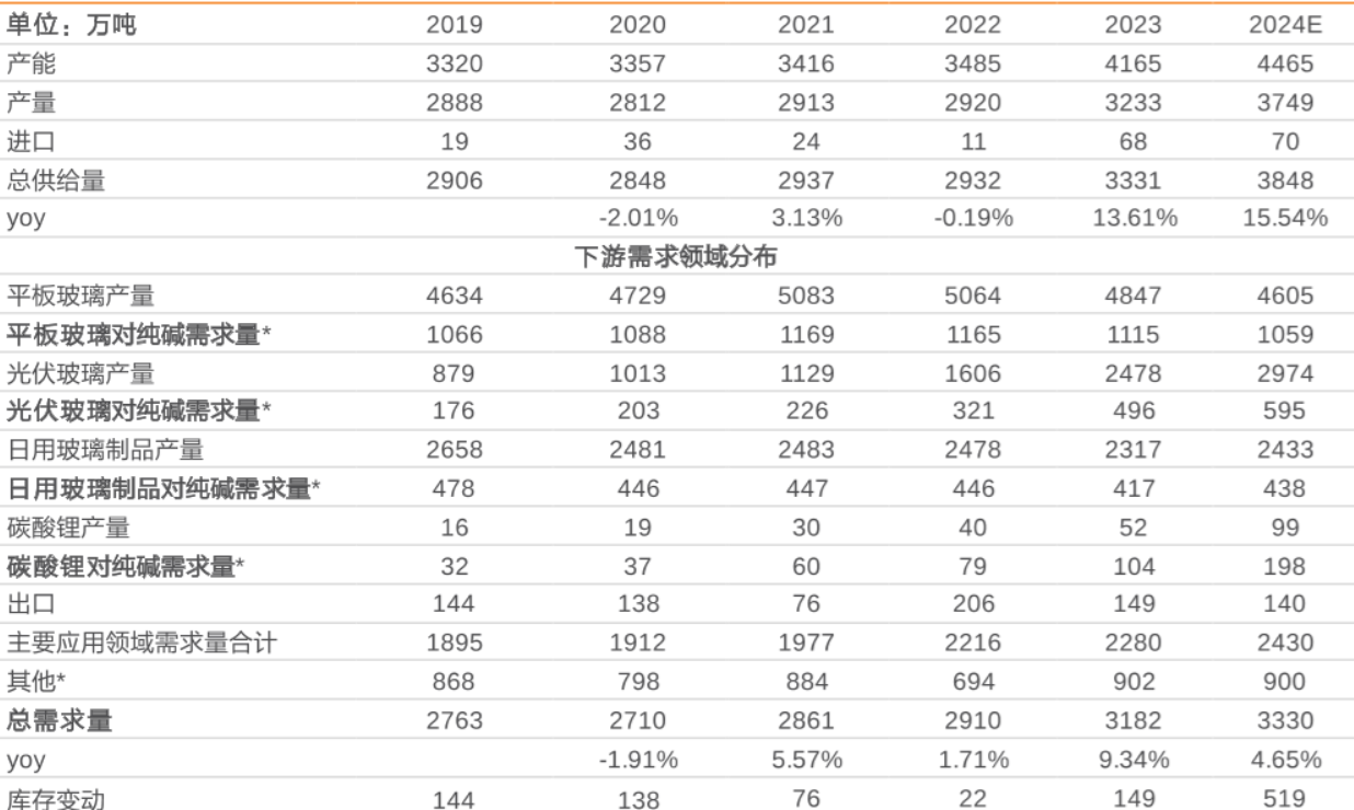 纯碱分为轻质纯碱和重质纯碱。纯碱又名碳酸钠、苏打,化学式为Na2CO3。纯碱为“三酸两碱”中的两碱之一,有“化工之母”的美称,广泛应用于建材、化工、冶金、纺织、食品、国防、医药等国民经济诸多领域。在玻璃、化工、冶金、纺织、造纸、医药等关键行业中,纯碱发挥着不可或缺的作用。它是玻璃行业的重要原料,能够提高玻璃的透明度和机械强度;在化工领域,天然碱被用于制造合成洗涤剂、肥皂、烧碱等多种化工产品;冶金行业中天然碱则作为助熔剂,有助于提取金属和提高冶炼效率;纺织和造纸行业则利用天然碱的碱性特性,进行纤维处理和纸张漂白;医药行业更是离不开天然碱,它是许多药物的重要原料之一。 我国占全球约45%纯碱第一大生产国,产能占比超40%。截至2023年年底,全球纯碱产能约7500万吨/年。据USGS数据,全球纯碱产量合计约6500万吨。我国是纯碱生产消费大国,目前国内生产产能约占世界产能的50%。目前我国纯碱工艺中,联碱法、氨碱法、天然碱法、ADC发泡剂联产法工艺占比分别为47%、42%、9%、2%。 我国纯碱产量分布较为集中,河南、青海、山东和江苏四个省份的纯碱产量占到全国总产量的60%以上。河南是我国纯碱生产第一大省,2022年纯碱产量达到了522.41万吨,占全国纯碱总产量的17.89%。2022年青海和山东两省纯碱产量均超过了400万吨,占比16.48%、14.89%。 2023年国内纯碱行业供需基本趋于平衡:供应端,新增产能基数虽大,但产量投放在2023Q3-Q4,全年增量有限;需求端,最大消费板块浮法玻璃行业受公建项目及保交楼政策影响,需求有所改善,产能增加;光伏玻璃、碳酸锂对纯碱消费持续增长,2023年,新能源成为纯碱下游需求结构占比中增速最大的消费行业。据卓创资讯数据,截至2023年底,全国纯碱产能达到3,908万吨,实现产量3,215万吨,同比增长10.3%。根据卓创资讯数据显示,2023年我国纯碱产能利用率为87.89%,较2022年下降2个pct。纯碱全年表观消费量3,158.5万吨,同比增长11.8%。 截至2025年,我国纯碱行业呈现产能扩张、区域集中、竞争格局头部化的特点,2024年我国纯碱产能达4080万吨,2025年预计新增300-450万吨,总产能将突破4300万吨,占全球总产能的55%以上。2023-2025年新增产能主要集中在天然碱法(如远兴能源阿拉善项目一期500万吨)和联碱法(如连云港碱业130万吨)。分布来看,河南,产能超800万吨,占全国19%,以联碱法和天然碱法为主。青海:产能430万吨,以盐湖提锂配套的天然碱法为主,重质纯碱占比超80%。山东:产能300万吨,氨碱法与联碱法并存。 纯碱行业竞争格局,行业CR5达54%,头部企业包括远兴能源(17.1%)、中盐化工(9.8%)、三友化工(8.6%)、山东海化(7.8%)、河南金山(6.5%)。CR10超70%,市场份额向资源型和技术型企业集中。远兴能源:依托内蒙古天然碱矿,成本低至800元/吨,到2025年年底,产能占比升至20%。 截至9月4日,纯碱厂家总库存182.21万吨,较上周四减少4.54万吨,跌幅2.43%,但同比仍增长300%以上。其中,轻质纯碱库存75.02万吨(环比+0.49万吨),重质纯碱库存107.19万吨(环比-5.03万吨)。目前纯碱行业受益于行业反内卷,价格相对于最底部价格1100元/吨。目前价格在1300元/吨左右。目前行业库存相对于最高位置200万吨,下降近20万吨,说明下游需求有所恢复。远兴能源作为行业龙头,产能超680万吨,产量680万吨,纯碱价格每上涨100元/吨,对公司业绩后增6.8亿。我们看好今年下半年,远兴能源业绩大幅好转。 |
