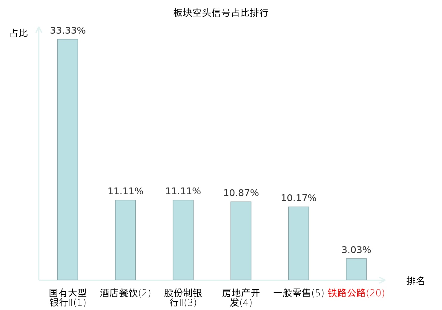 全市场所有行业板块中主力空头信号占比排名中,国有大型银行Ⅱ板块位居第一。专业工程板块名次提升最快,较昨日上升104位。