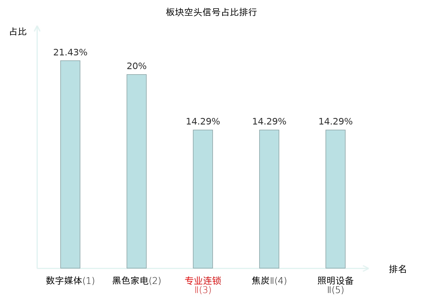 全市场所有行业板块中主力空头信号占比排名中,数字媒体板块位居第一。装修装饰Ⅱ板块名次提升最快,较昨日上升110位。
