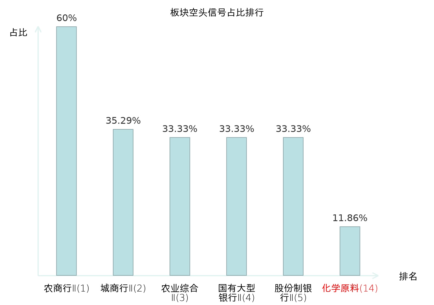 全市场所有行业板块中主力空头信号占比排名中,农商行Ⅱ板块位居第一。铁路公路板块名次提升最快,较昨日上升106位。