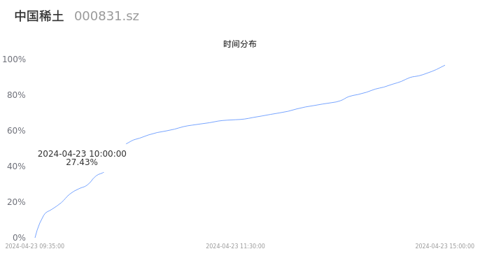 000831中国稀土2024年04月23日成交21.43万手,成交金额5.92亿元,相较昨日放量1.81万手,换手率2.18%,成交清淡。