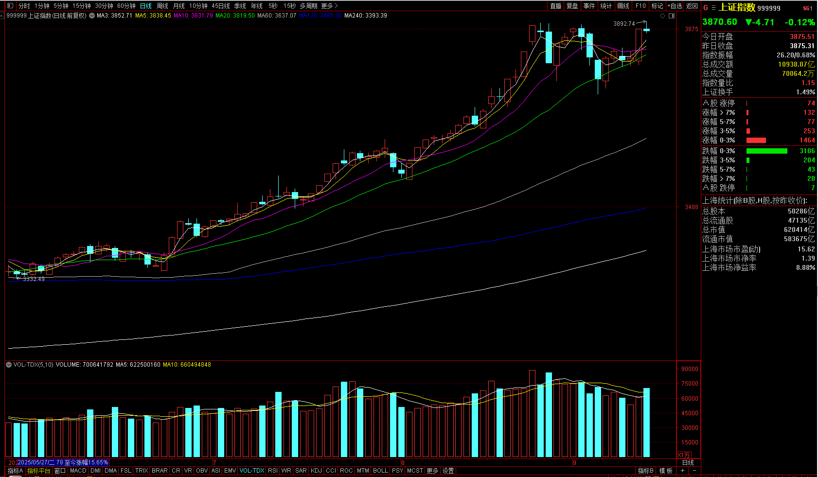 沪指虽然创出阶段新高,但更多地是轮动拉升导致的。而市场的成交量也将决定沪指后市的力度,若成交量能维持在2.5万亿以上,那有望小幅回踩之后再度走强,从而转为上升态势,挑战3900点;若继续缩量至2万亿附近,那沪指大概率会回踩,而陷入区间震荡。而我们最好是做好两手的准备,除了题材的轮动之外,板块的持续性效应也可以继续跟踪
