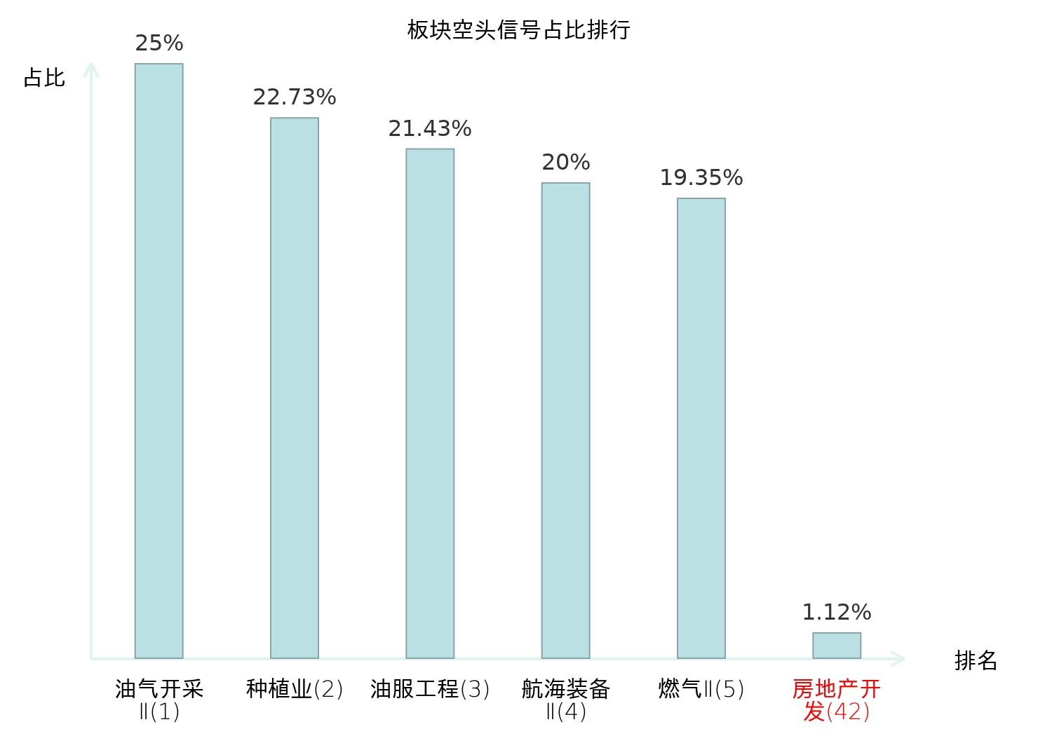 全市场所有行业板块中主力空头信号占比排名中,油气开采Ⅱ板块位居第一。专业工程板块名次提升最快,较昨日上升101位。