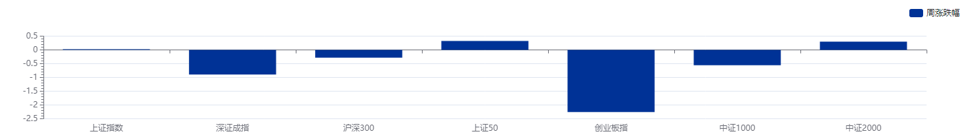 上周,主要权益指数涨跌不一。其中,上证指数上涨0.03%,深证成指下跌0.89%,沪深300下跌0.28%,上证50上涨0.32%,创业板指下跌2.26%。中证1000下跌0.56%,中证2000上涨0.3%。