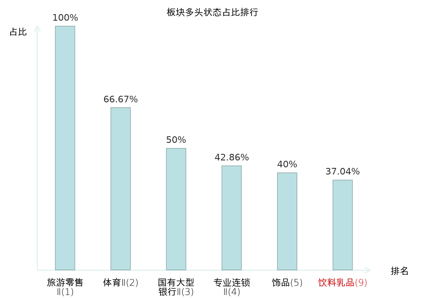 全市场所有行业板块中主力多头状态占比排名中,旅游零售Ⅱ板块位居第一。半导体板块名次提升最快,较昨日上升78位。