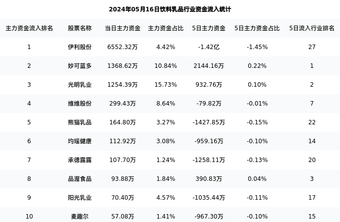 从主力资金流向来看,饮料乳品行业今日主力资金流入8.48亿元,在所有申万二级行业中排名:90/131。