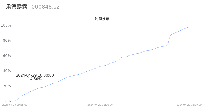 000848承德露露2024年04月29日成交12.07万手,成交金额1.10亿元,相较昨日放量1552手,换手率1.16%,成交清淡。