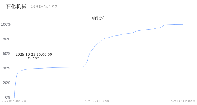 000852石化机械2025年10月23日成交272.02万手,成交金额25.31亿,相较昨日放量264.22万手,换手率28.76%,成交活跃。