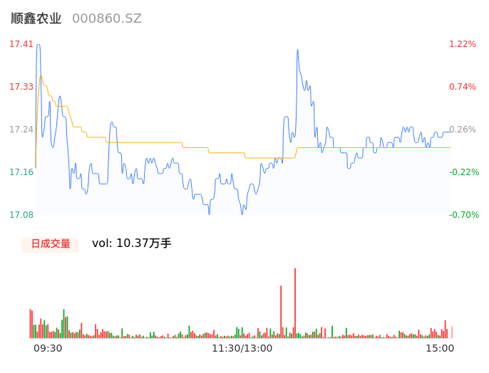 04月26日,顺鑫农业收报17.24,股价涨幅0.23%,成交金额1.79亿元,换手率1.40%。