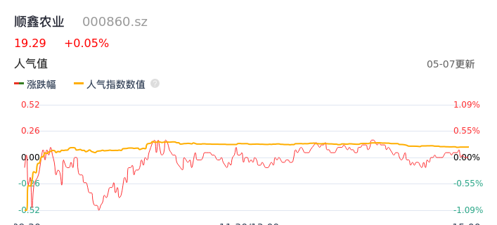 05月07日,顺鑫农业收报19.29,股价涨幅0.05%,成交金额2.42亿元,换手率1.70%。