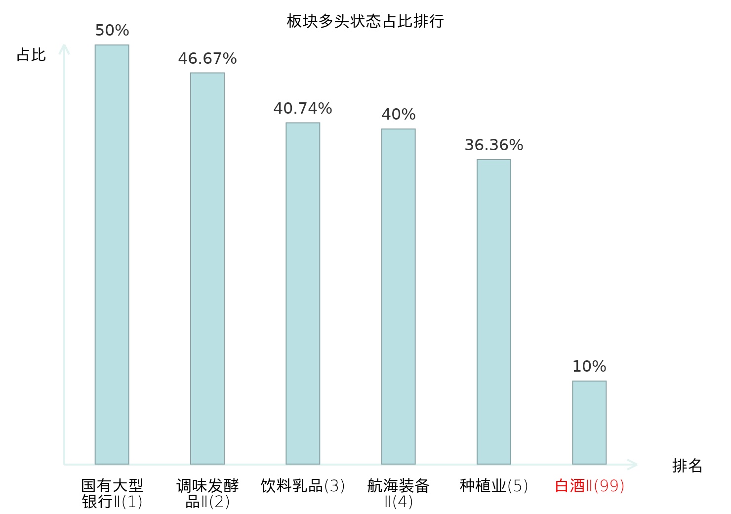 全市场所有行业板块中主力多头状态占比排名中,国有大型银行Ⅱ板块位居第一。金属新材料板块名次提升最快,较昨日上升71位。