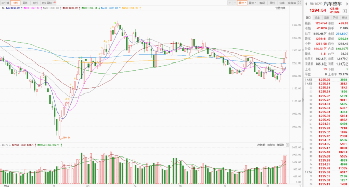 主题板块上,今日下午,汽车整车概念持续拉升,金龙汽车、江铃汽车涨停,北汽蓝谷、比亚迪、安凯客车、海马汽车等跟涨。