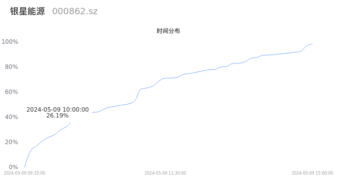 000862银星能源2024年05月09日成交8.40万手,成交金额4439.21万元,相较昨日缩量1.25万手,换手率1.34%,成交清淡。