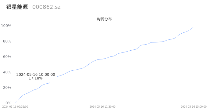 000862银星能源2024年05月16日成交10.08万手,成交金额5377.37万元,相较昨日缩量4.98万手,换手率1.61%,成交清淡。