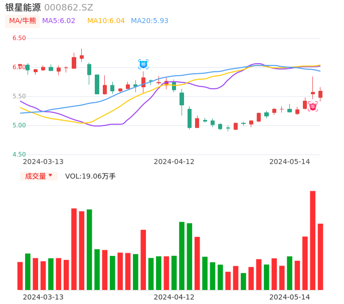 05月14日,银星能源收报5.59,股价涨幅0.36%,成交金额1.06亿元,换手率3.03%。