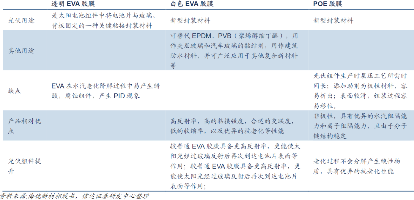 透明EVA胶膜、白色EVA胶膜、POE胶膜比较