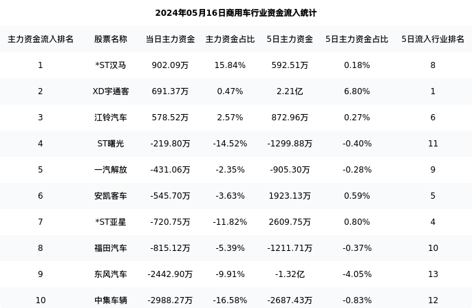 从主力资金流向来看,商用车行业今日主力资金流入14.56亿元,在所有申万二级行业中排名:46/131。
