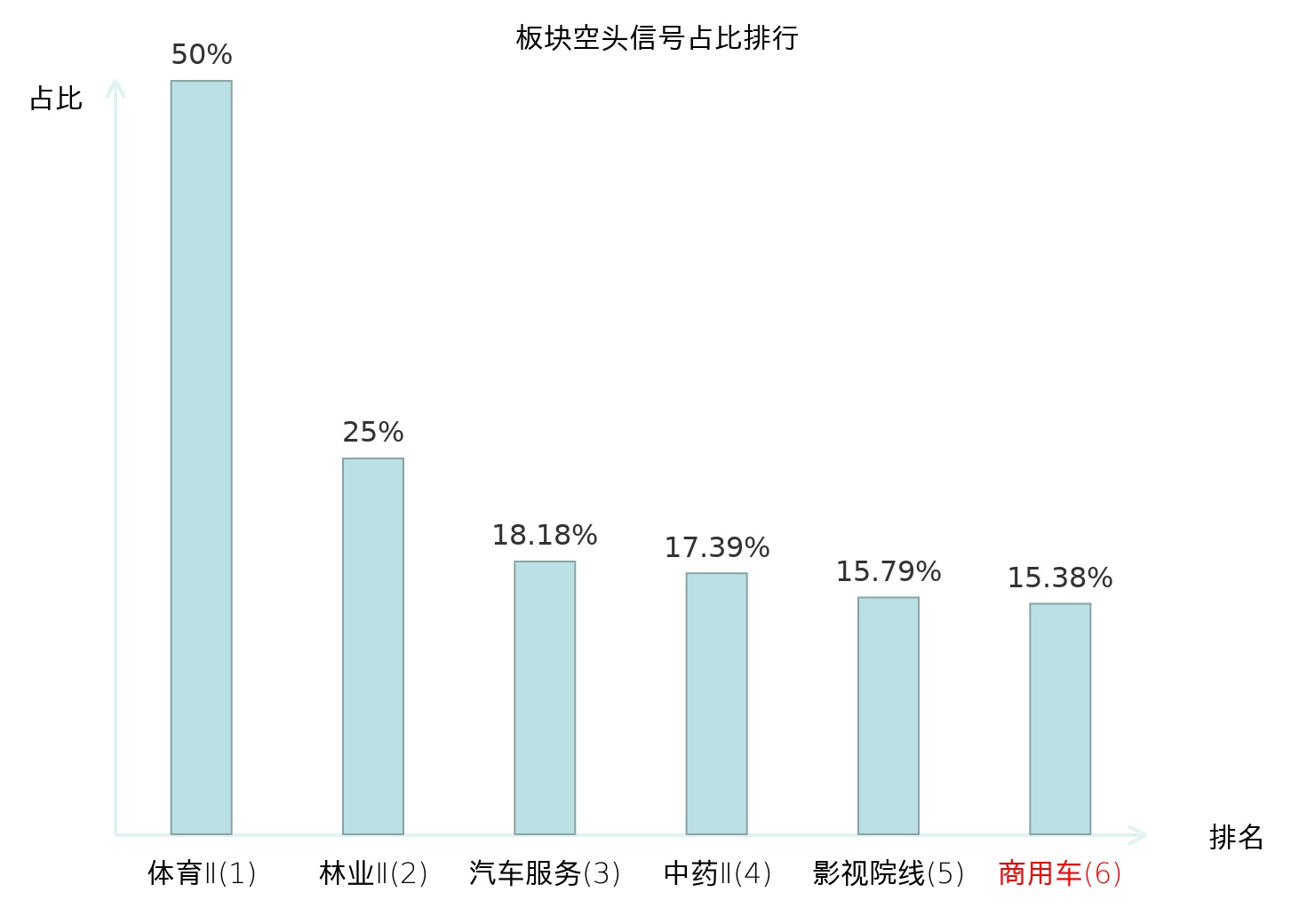 全市场所有行业板块中主力空头信号占比排名中,体育Ⅱ板块位居第一。文娱用品板块名次提升最快,较昨日上升101位。