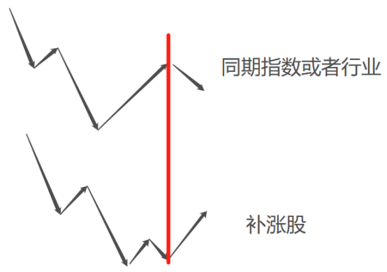 补涨指股票在大盘指数上涨时,股票价格没怎么上涨。大盘滞涨或调整阶段股票股价反而上涨。