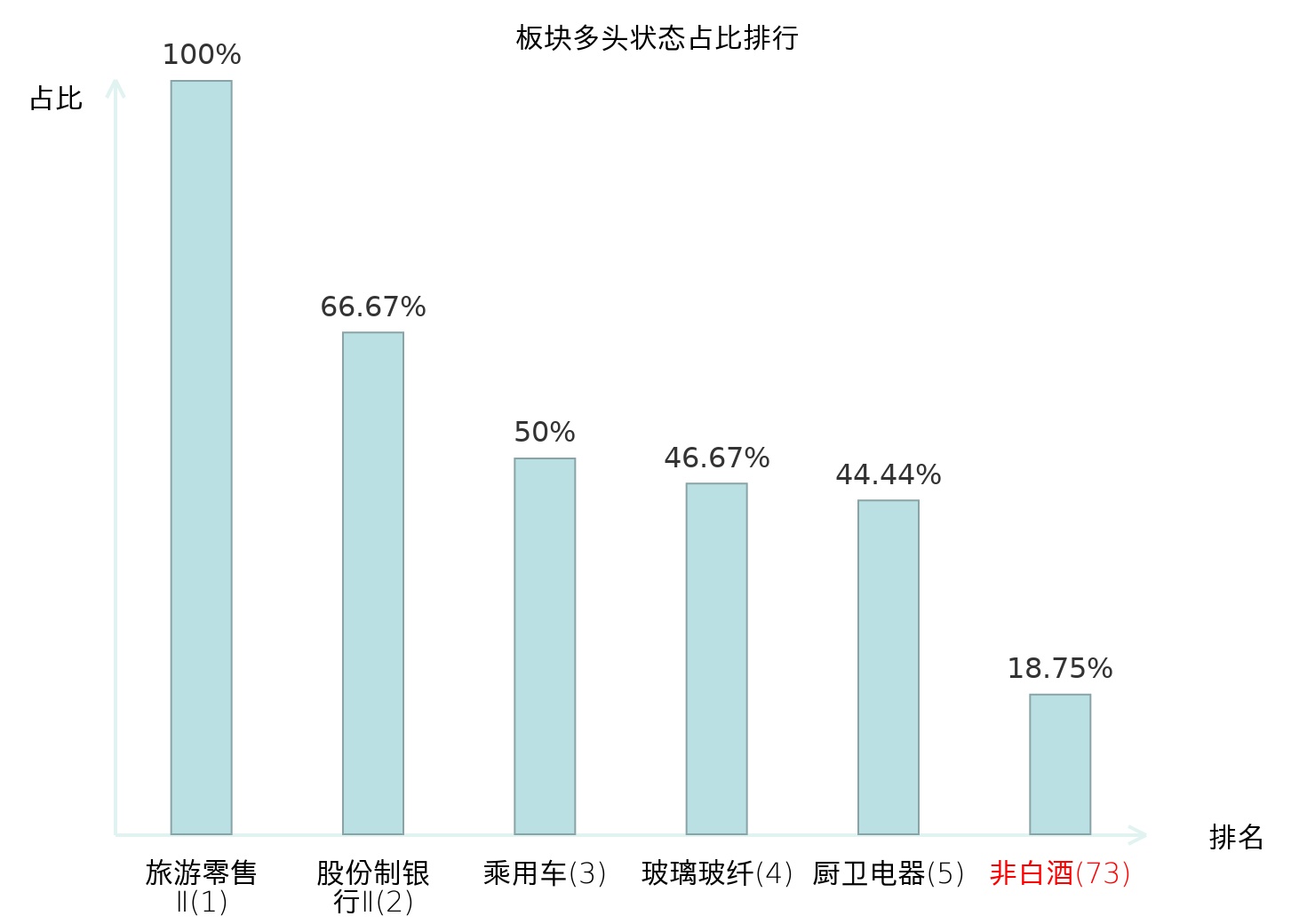 全市场所有行业板块中主力多头状态占比排名中,旅游零售Ⅱ板块位居第一。农产品加工板块名次提升最快,较昨日上升72位。