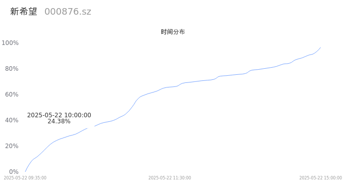 000876新希望2025年05月22日成交26.06万手,成交金额2.48亿,相较昨日放量7.27万手,换手率0.58%,成交清淡。