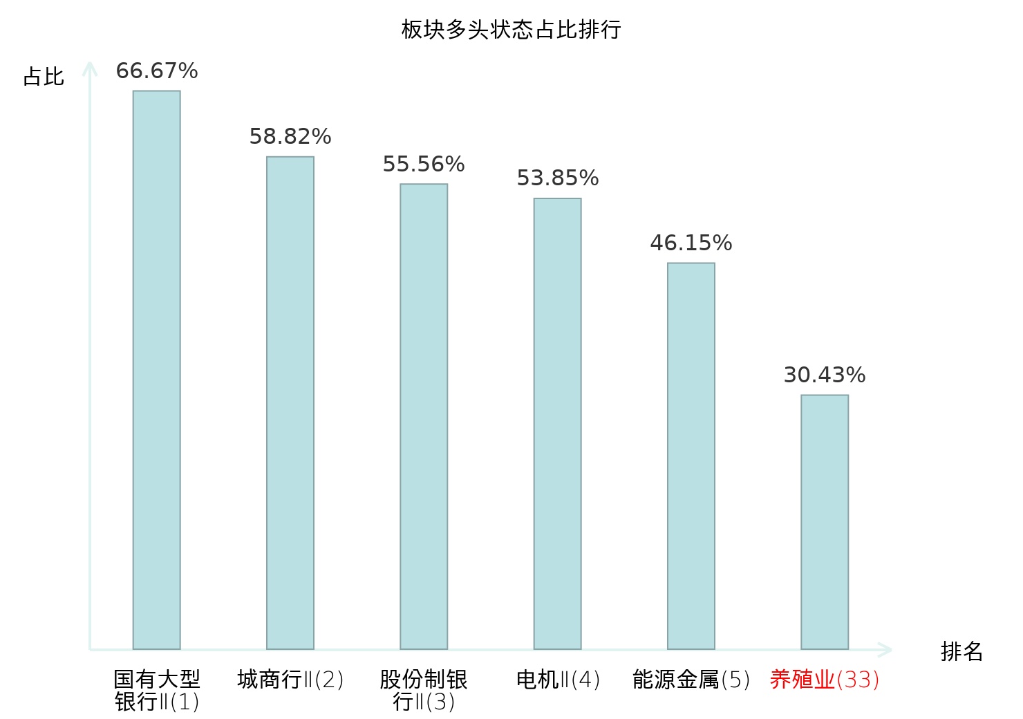 全市场所有行业板块中主力多头状态占比排名中,国有大型银行Ⅱ板块位居第一。自动化设备板块名次提升最快,较昨日上升57位。